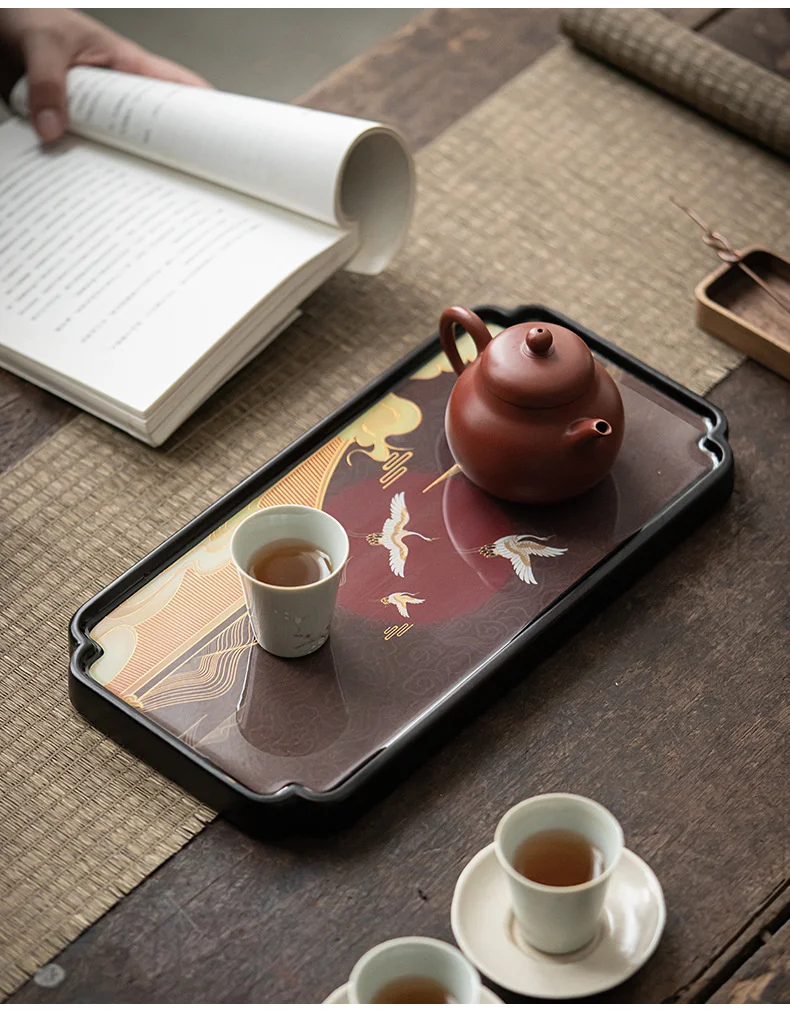 Crafted from natural bamboo, the tray is lightweight, durable, and reusable. Available in four illustrated styles, it also doubles as a decorative piece for home or office tea spaces.