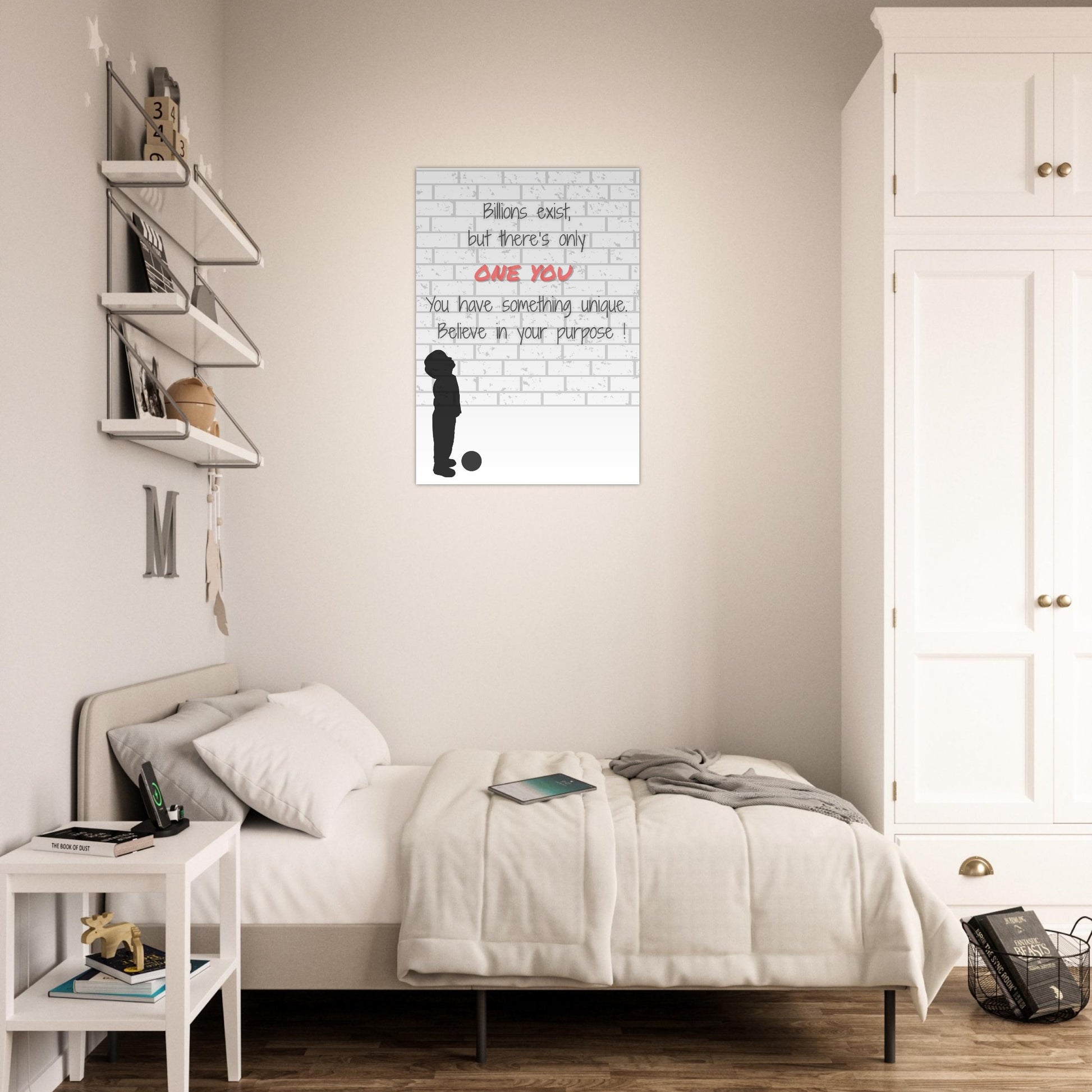 Transform your space into a haven of inspiration with our “Believe in Your Purpose” poster. This motivational wall art is a daily reminder that billions exist, but there’s only one you — encouraging positivity, growth, and confidence in your unique journey. Perfect for a home office, bedroom, classroom, or creative space, it makes an uplifting gift for teens, students, and loved ones.