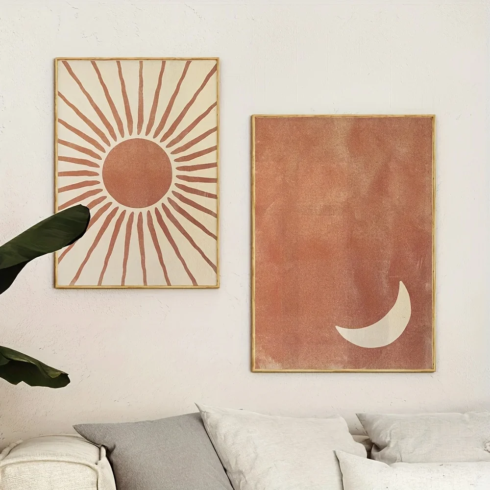 Bohemian Moon and Sun Wall Art Set – 2-Piece Abstract Clay & Beige Posters | DArtano