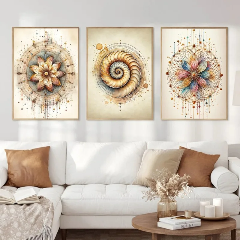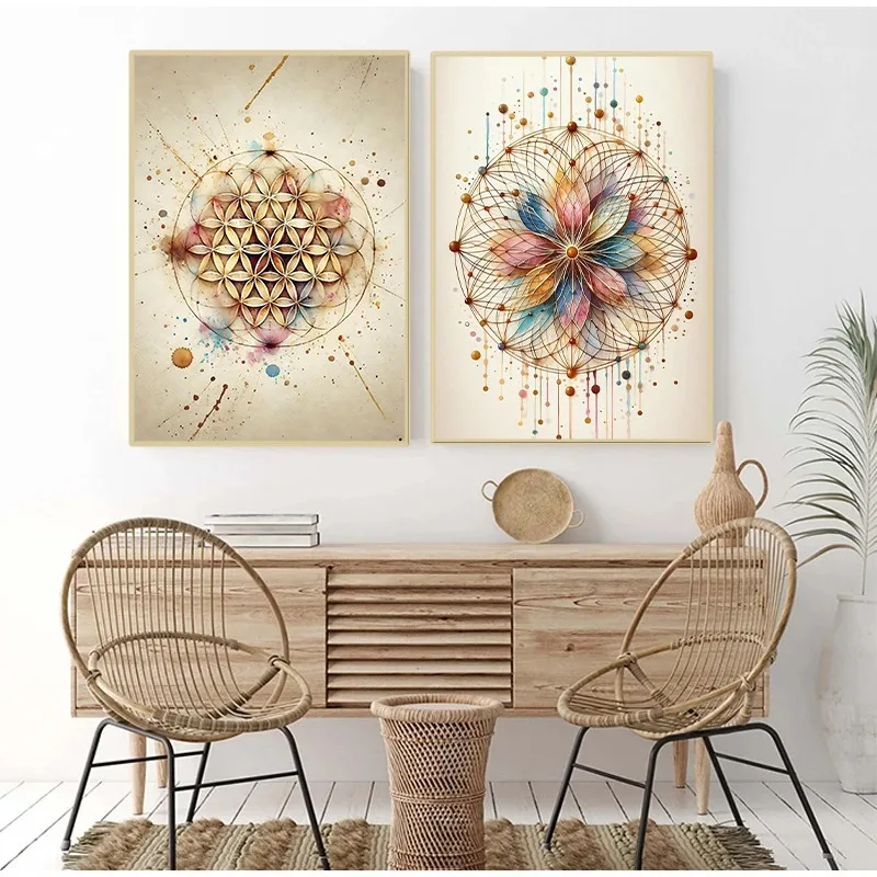 Boho Flower of Life Meditation Poster – Sacred Geometry Wall Art for Positive Energy and Home Decor
