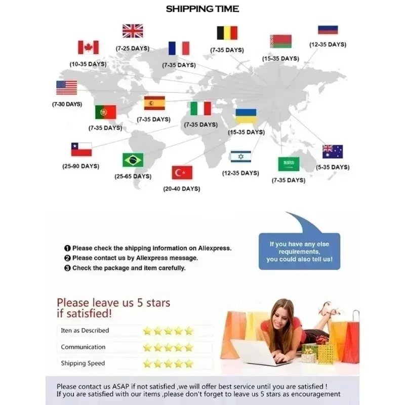 3.The expected delivery date will be affected by customs, weather etc., sometimes it may take a little longer to receive,Please contact us when you have not received the package to extend your order protection time.