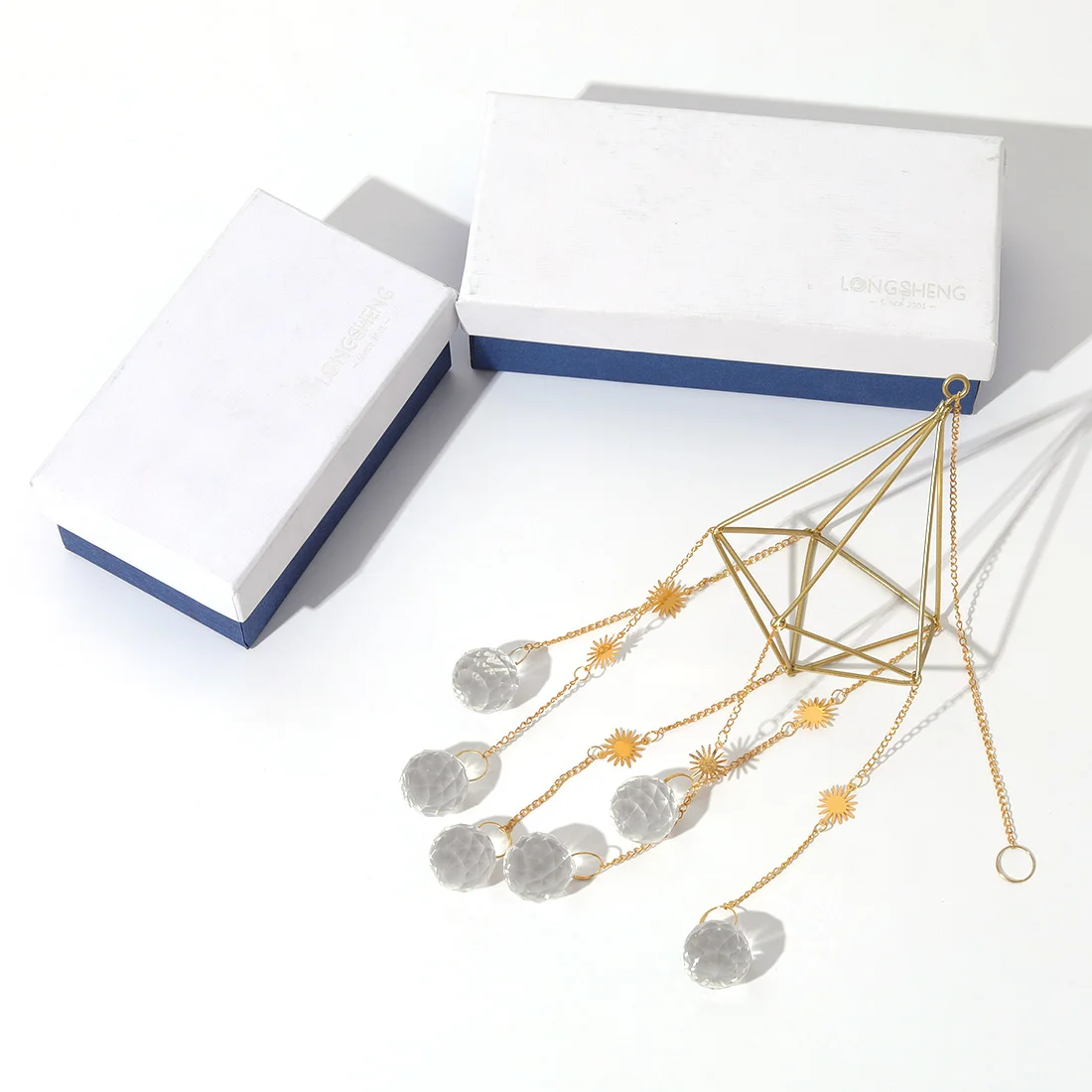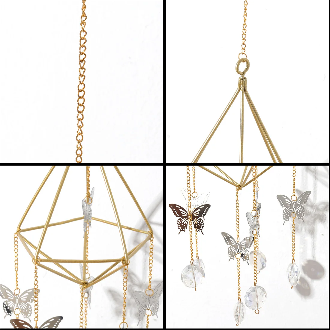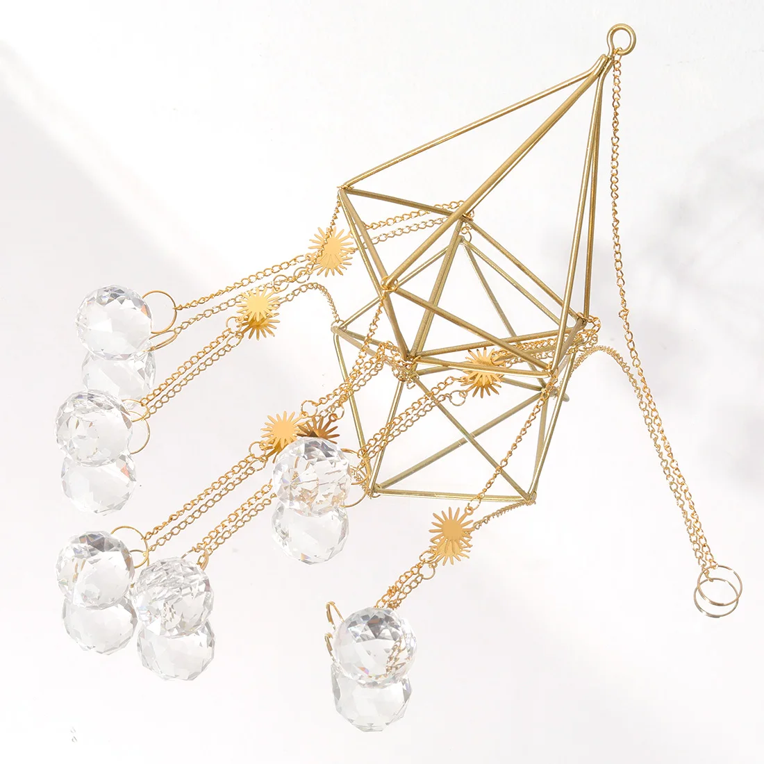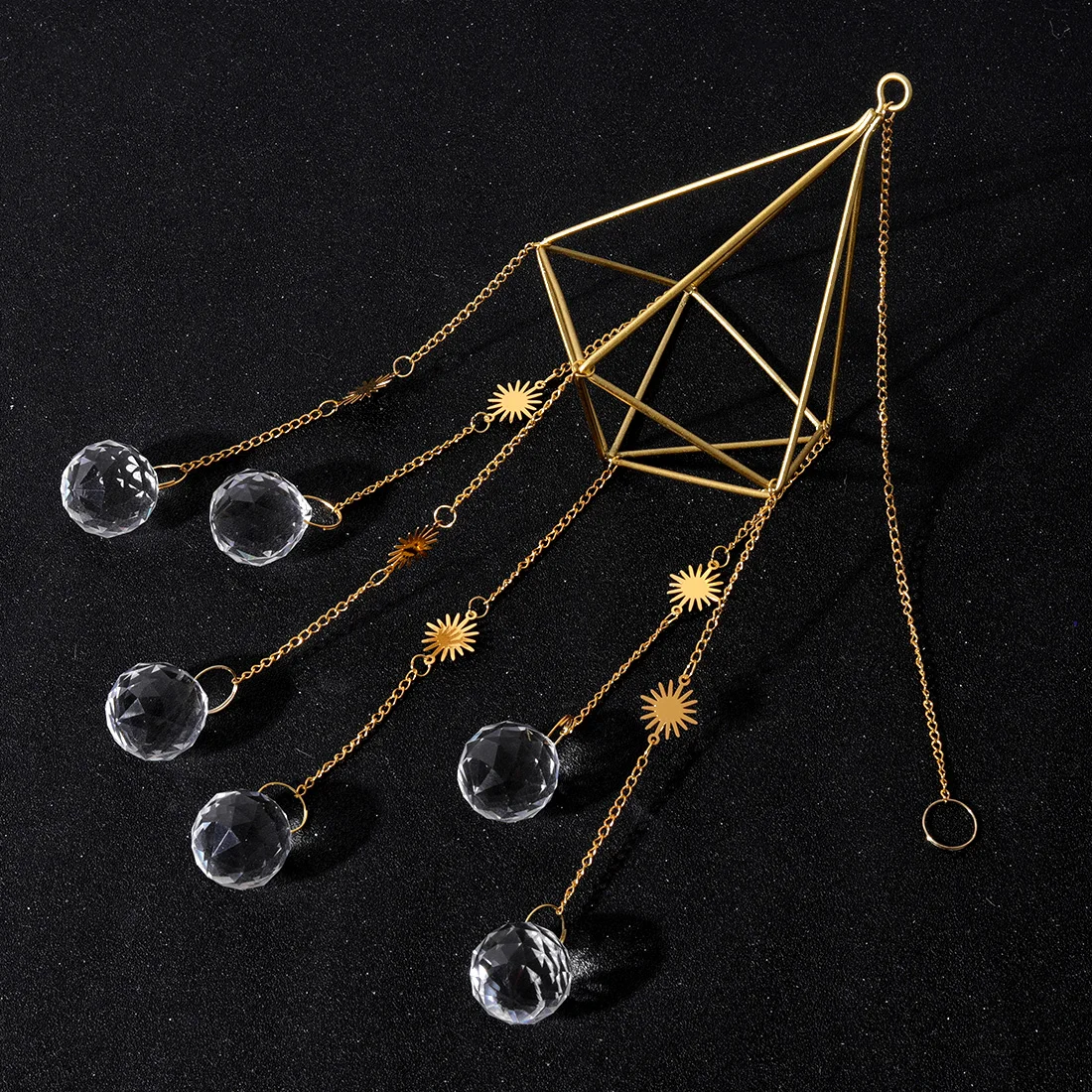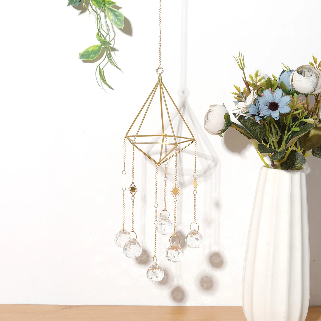 Suspended from a delicate metal frame and chain, this decorative pendant works well as a window ornament, light-catching accent, or small hanging decoration for shelves, hooks, or curtain rails. Its lightweight design makes it easy to hang while adding a decorative focal point without overwhelming your space.