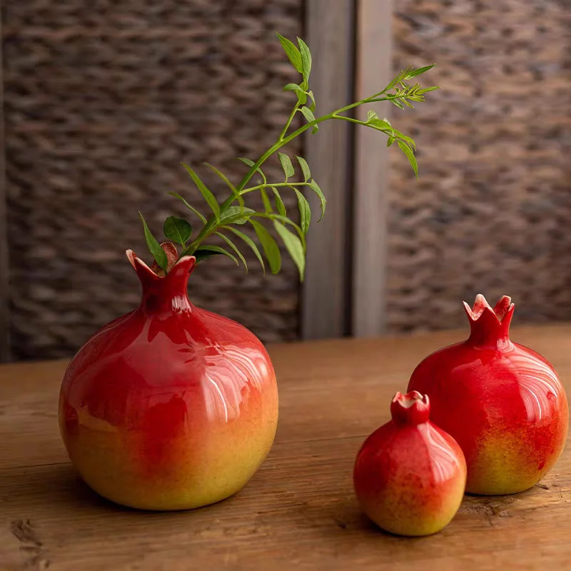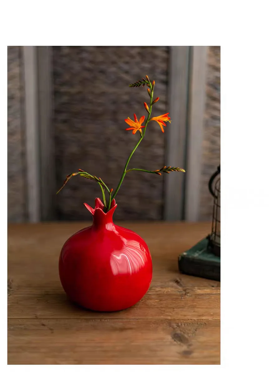 Add a symbolic and decorative touch to your space with this red pomegranate ceramic vase, inspired by traditional Chinese design. Shaped like a pomegranate—often associated with prosperity, abundance, and good fortune—this piece works beautifully as a tabletop vase or standalone ornament.