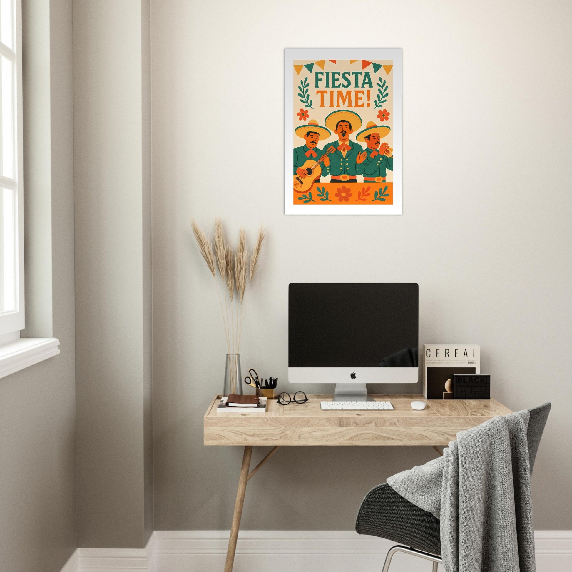 Fiesta Time Poster – Retro Mexican Wall Art – Vintage Mariachi Band Print – Colorful Festival & Cinco de Mayo Home Decor