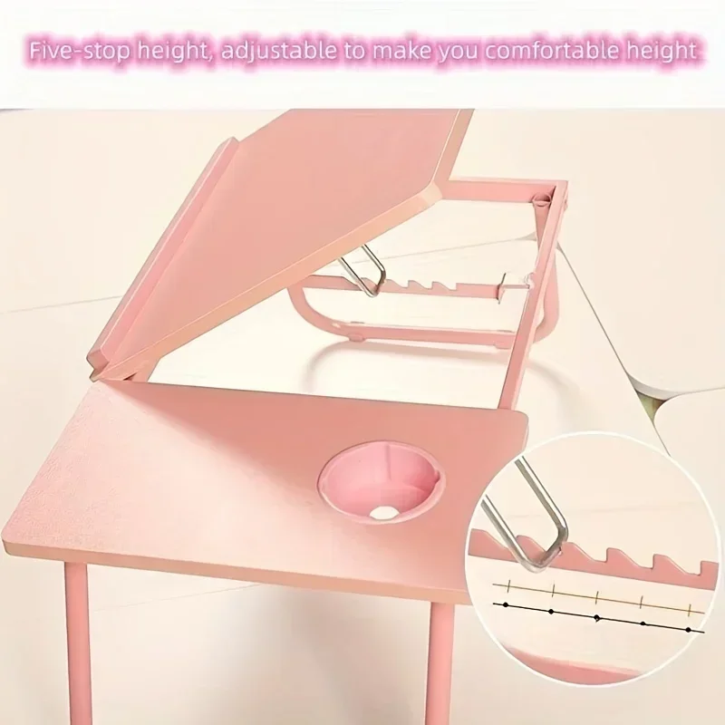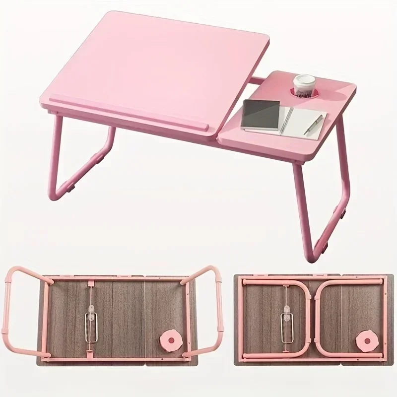 Foldable Laptop Desk – Adjustable Bed Table for Work & Study - Pink