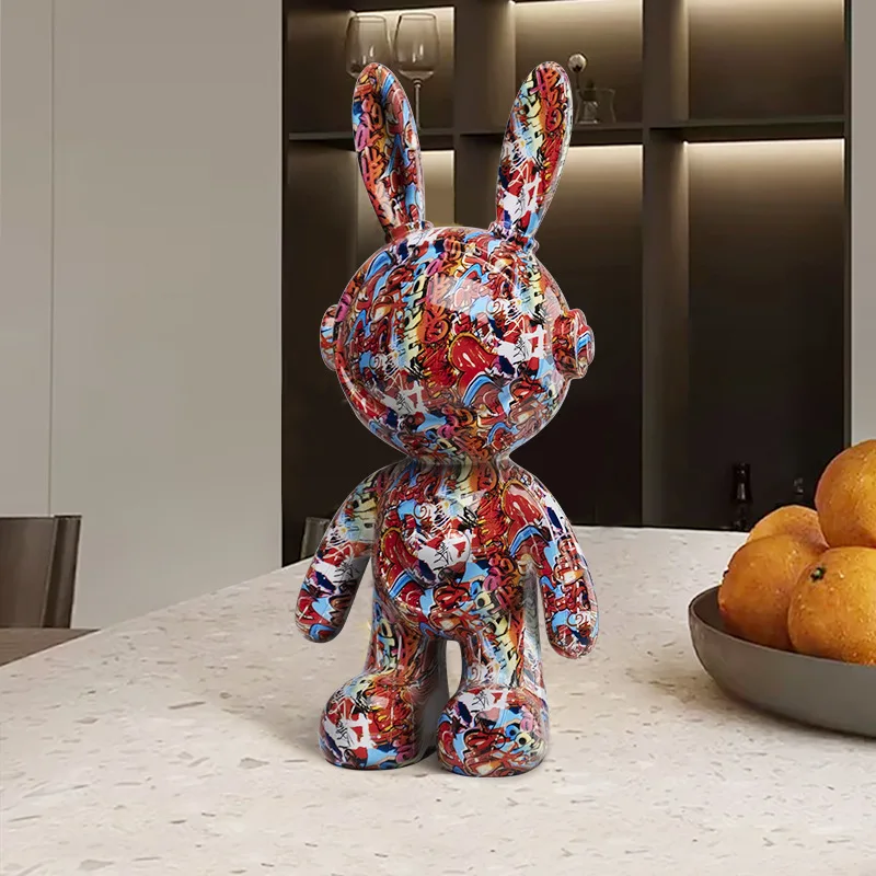 Add bold, contemporary character to your space with these graffiti-style resin rabbit and bear statues. Designed as modern collectible art pieces, each figure combines playful animal forms with vibrant colours, metallic finishes, and street-art-inspired detailing.