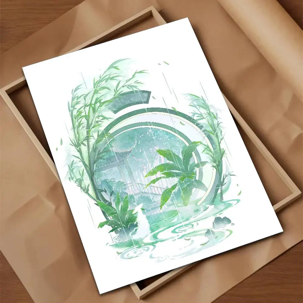 Green Jiangnan Self-Adhesive Art Poster – Modern Waterproof Wall Print