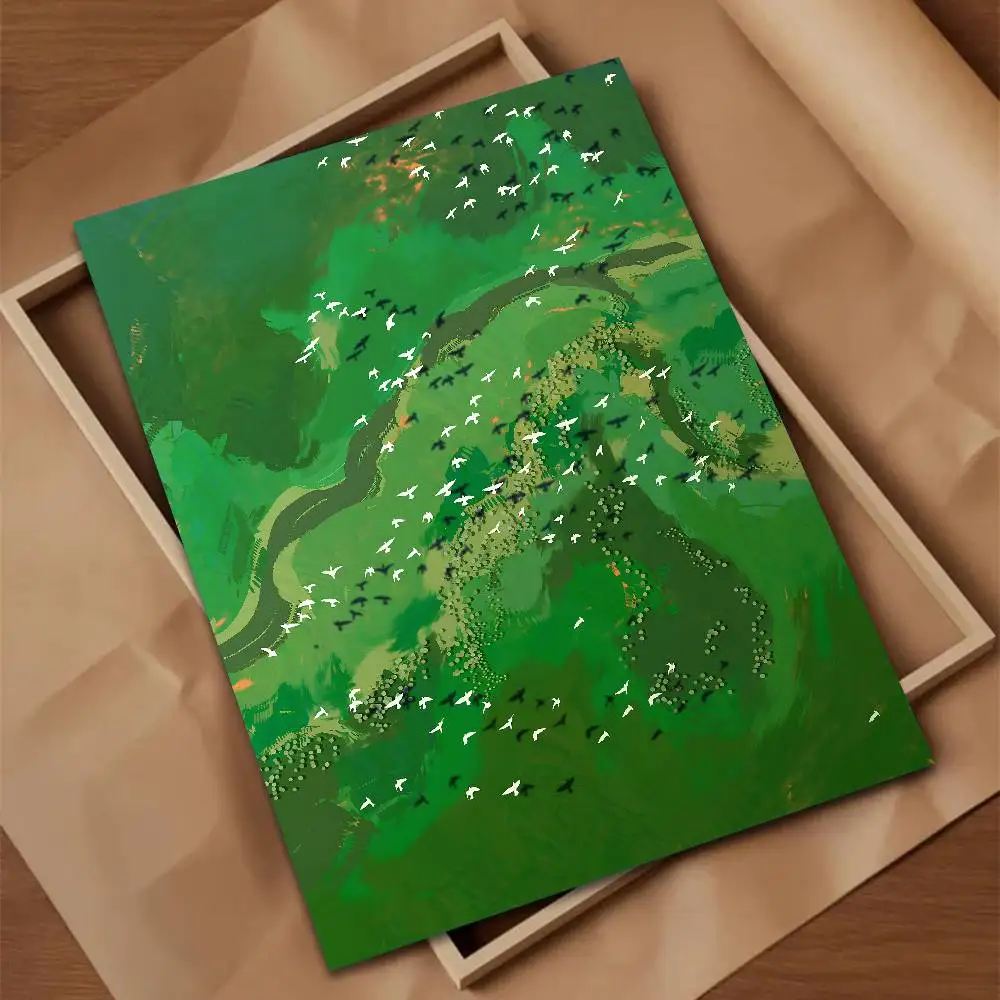 Bring calm, flowing landscapes into your space with this Green Jiangnan self-adhesive art poster. Inspired by modern Asian-style scenery, each design blends rich green tones with tranquil natural elements, perfect for creating a peaceful focal point in your home.