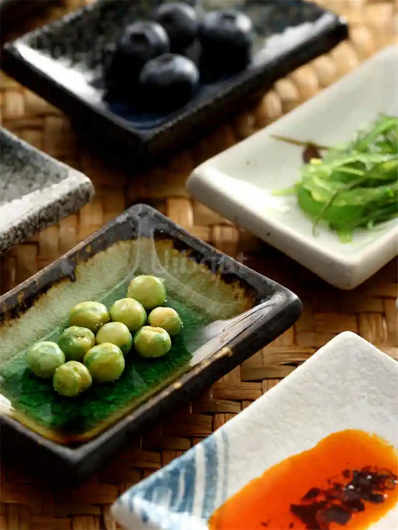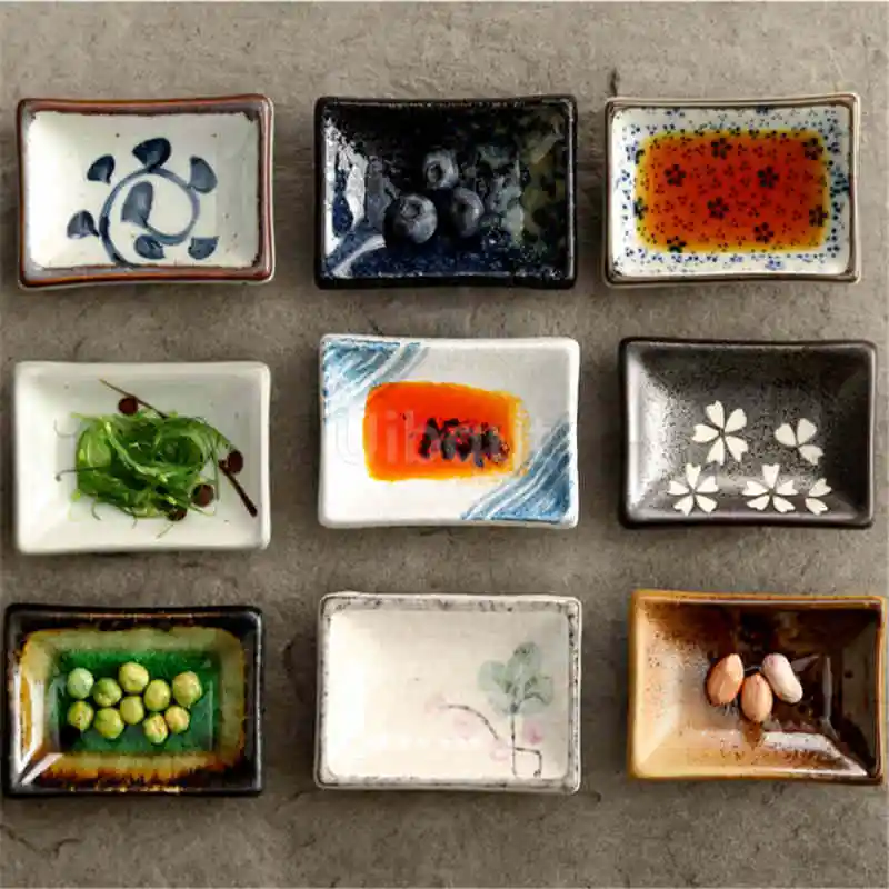 Serve dips and condiments properly with this Japanese-style ceramic sauce dish, designed for sushi, soy sauce, wasabi, mustard, chilli oil, or small side portions. The compact rectangular shape is practical for everyday use while the hand-finished glazed designs add a subtle decorative touch to the table.