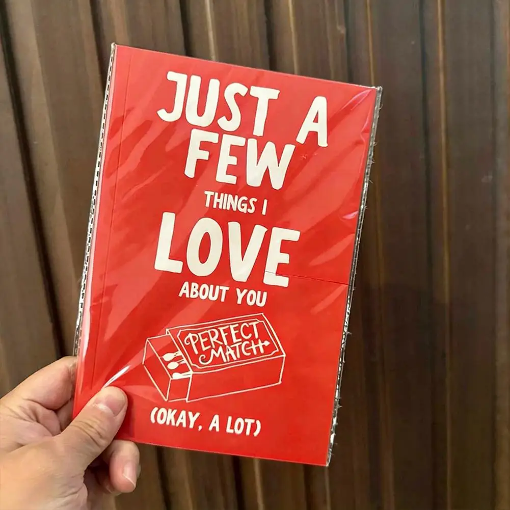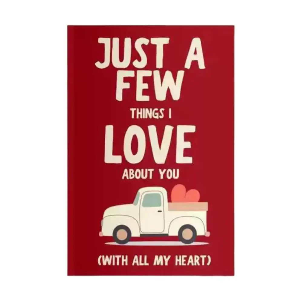 This “Just a Few Things I Love About You” fill-in-the-blank love book is a simple and meaningful way to share your feelings with someone special. Designed to be completed by you, it allows you to write personal messages, memories, and reasons why you love them, creating a thoughtful keepsake they can treasure.