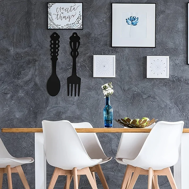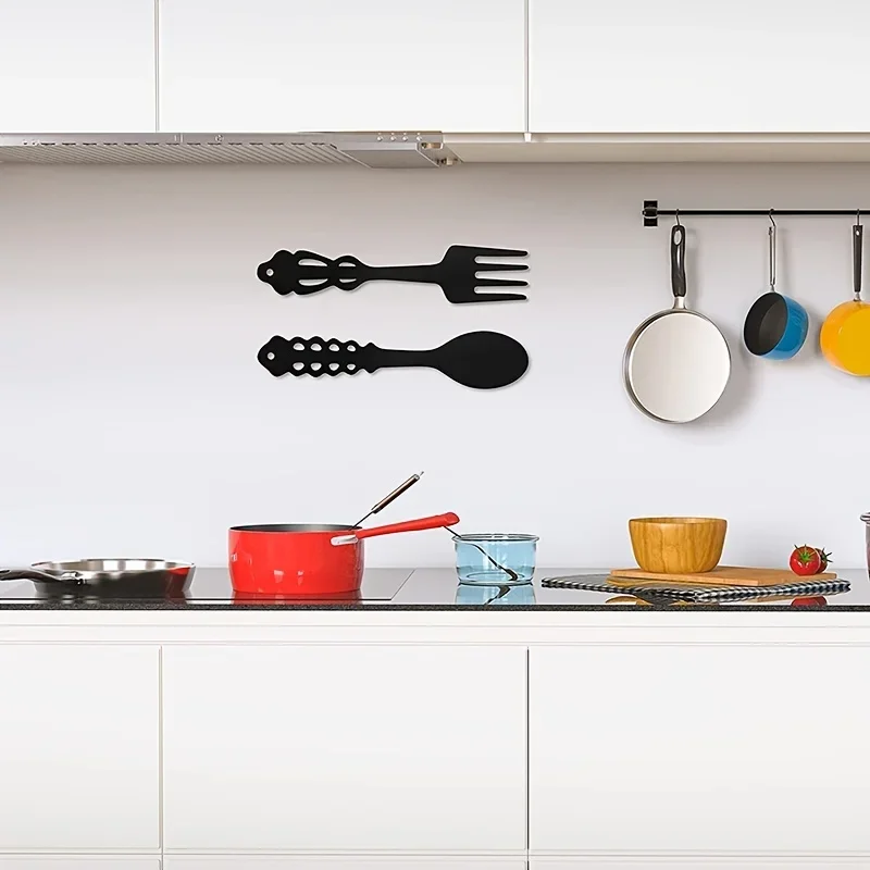 Crafted from durable metal with a matte black finish, these wall hangings bring a modern farmhouse and rustic kitchen feel to your space. Their clean silhouette design makes them easy to style above worktops, shelves, coffee stations, or dining areas.