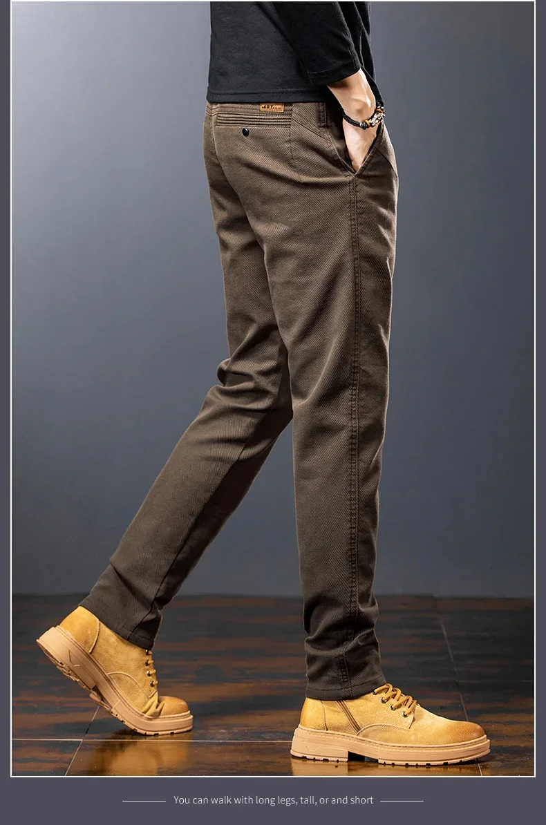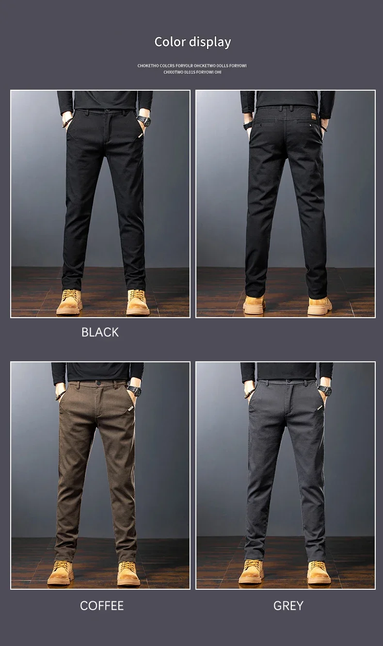 Men’s Slim Straight Stretch Twill Trousers – Smart Casual Cotton Pants
