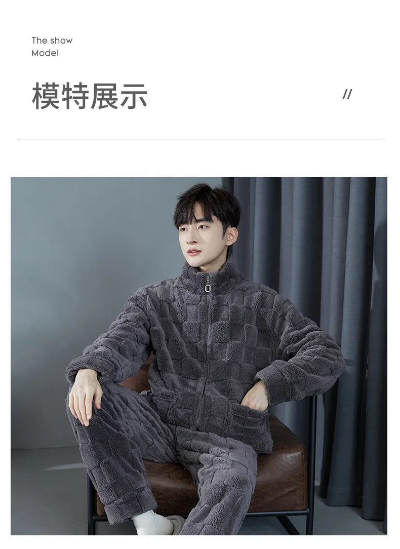 2025 Men’s Thicken Warm Pajamas Sets – Flannel 2-Piece Sleepwear for Autumn & Winter