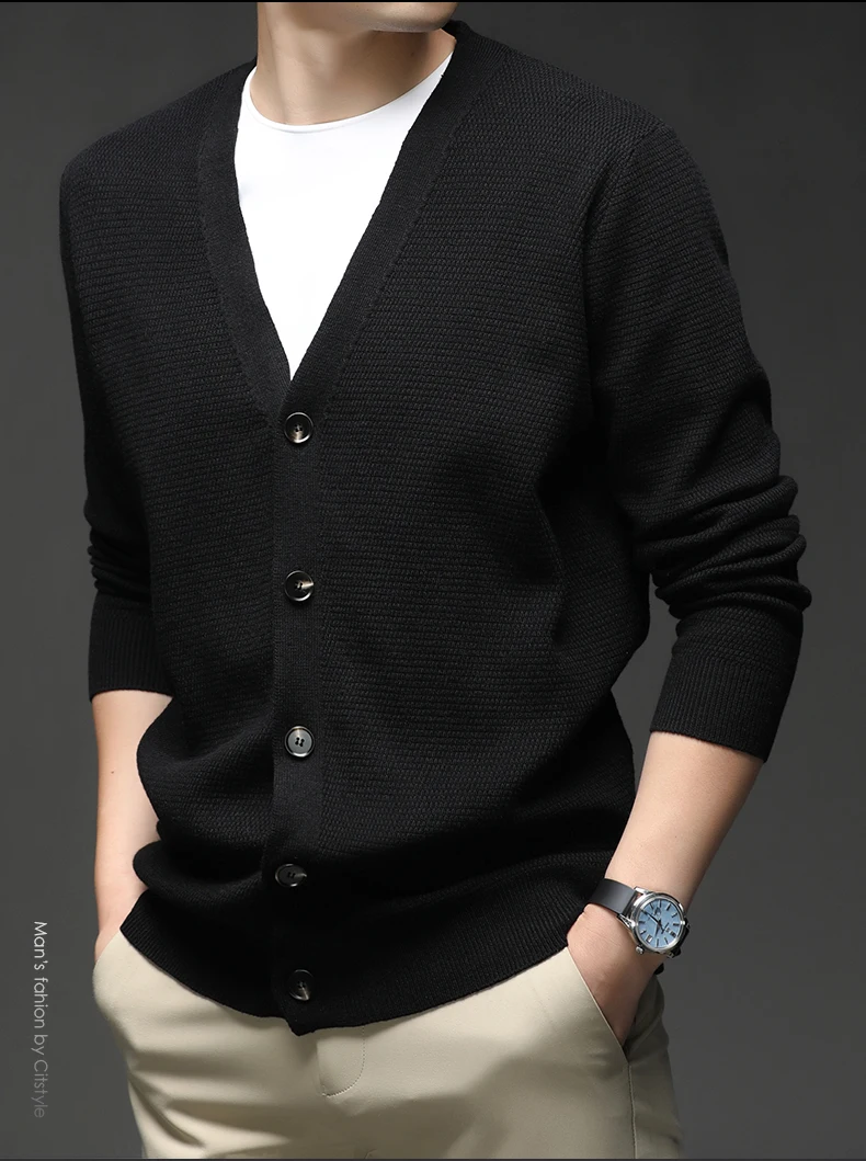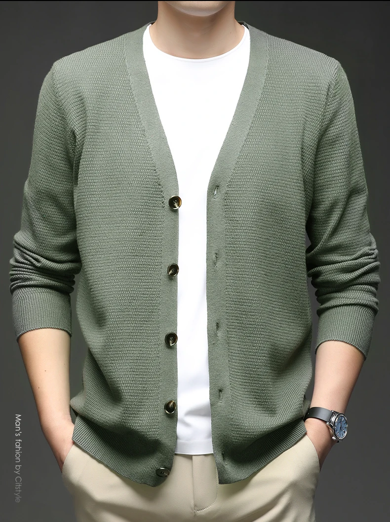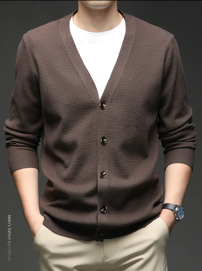 Men’s V-Neck Knitted Cardigan – Smart Casual Button Sweater