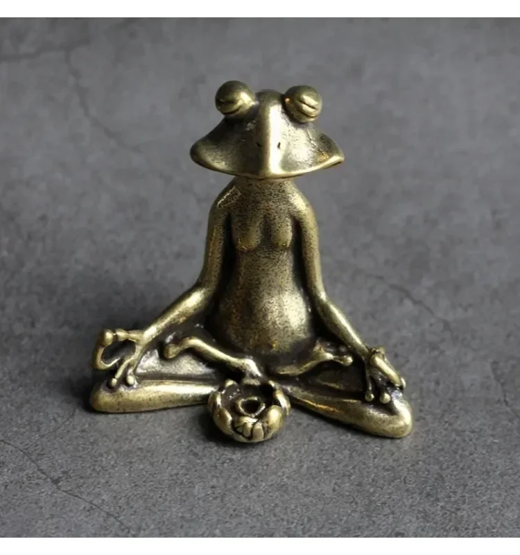 Mini Zen Frog Figurine – Solid Brass Meditation Frog Incense Holder