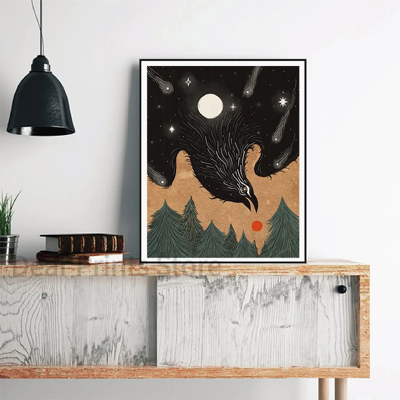 Bring mysterious charm and woodland magic into your space with these Northern Flicker Bird Art Prints. Inspired by gothic folklore and cottagecore design, each piece captures the mystique of ravens and crows through detailed, vintage-style illustration.
