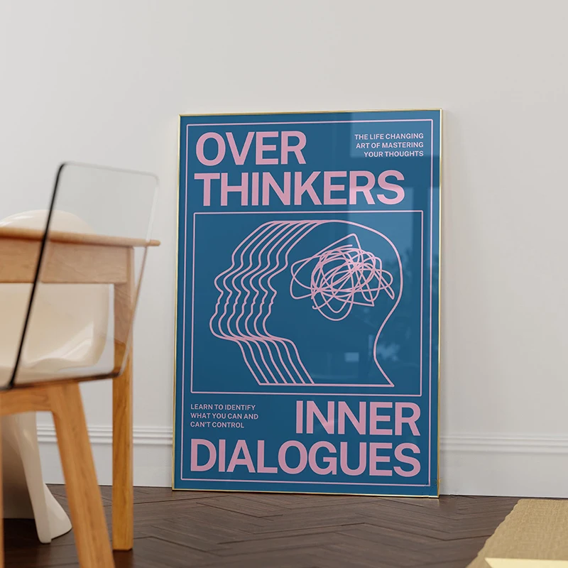 Bring thought-provoking style into your home with the Overthinkers Typography Poster, a bold modern print exploring the balance between thoughts and self-awareness.