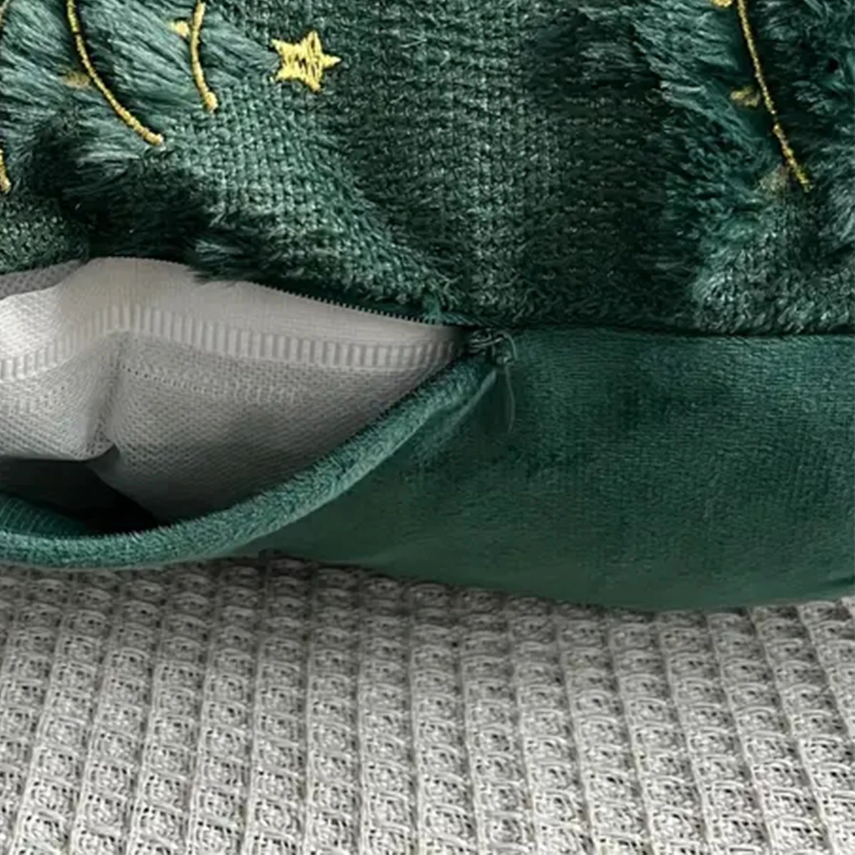 Plush Christmas Tree Pillow Cover – Green 45x45cm Festive Cushion