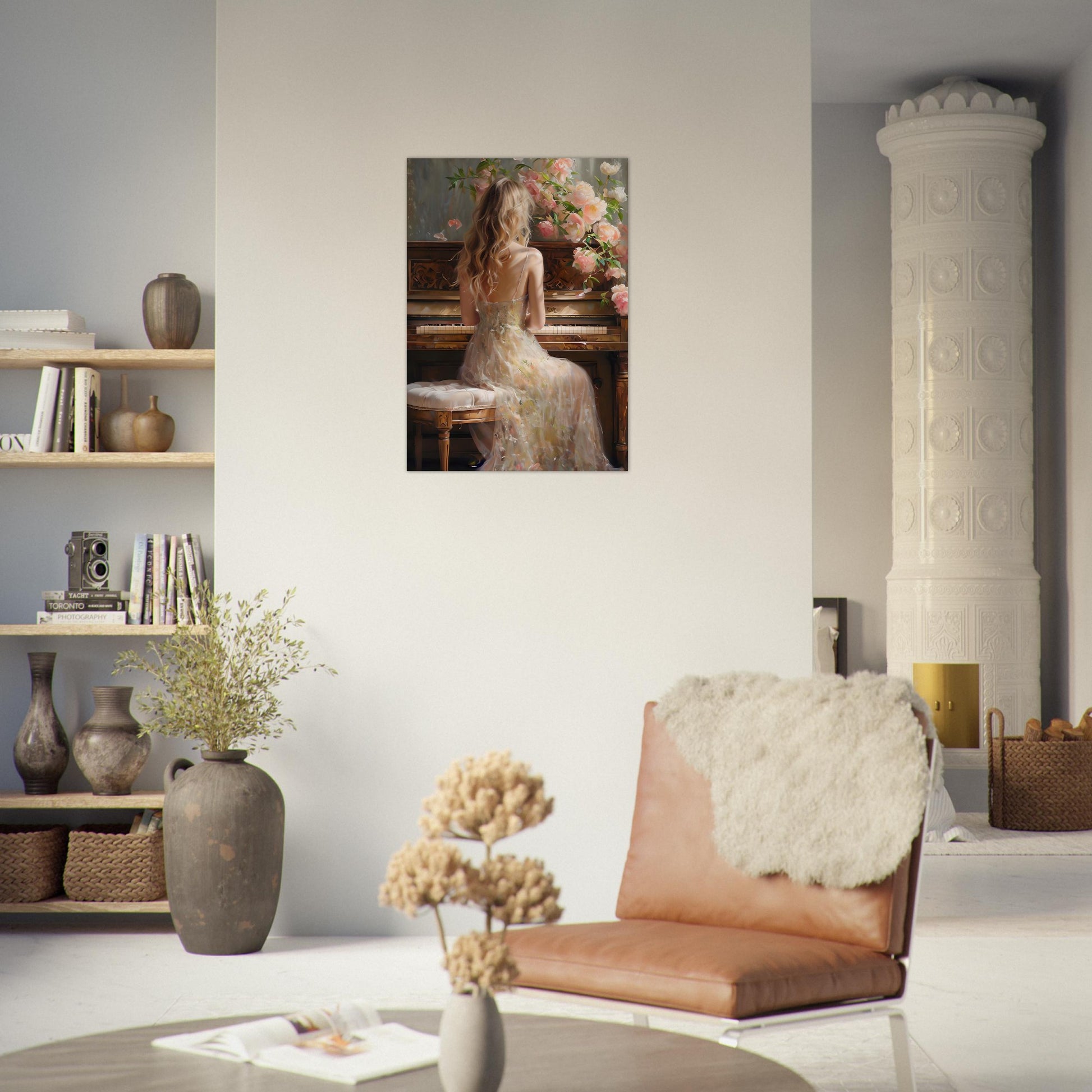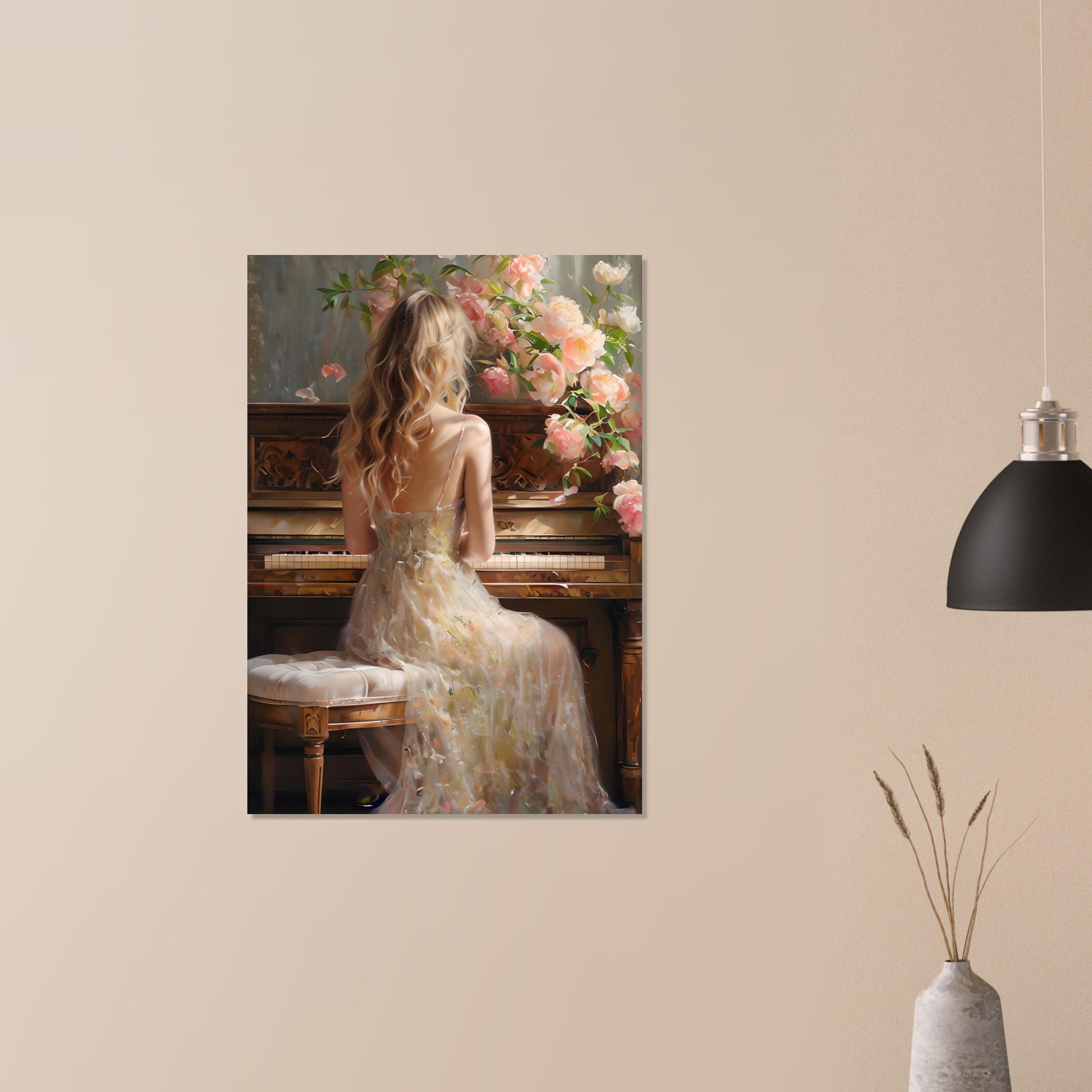 Romantic Piano Poster – Vintage Art Print of Woman with Flowers