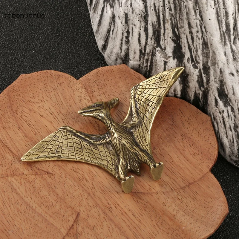 Solid Brass Pterosaur Mini Statue – Jurassic Dinosaur Desk Ornament Decorative Figurine