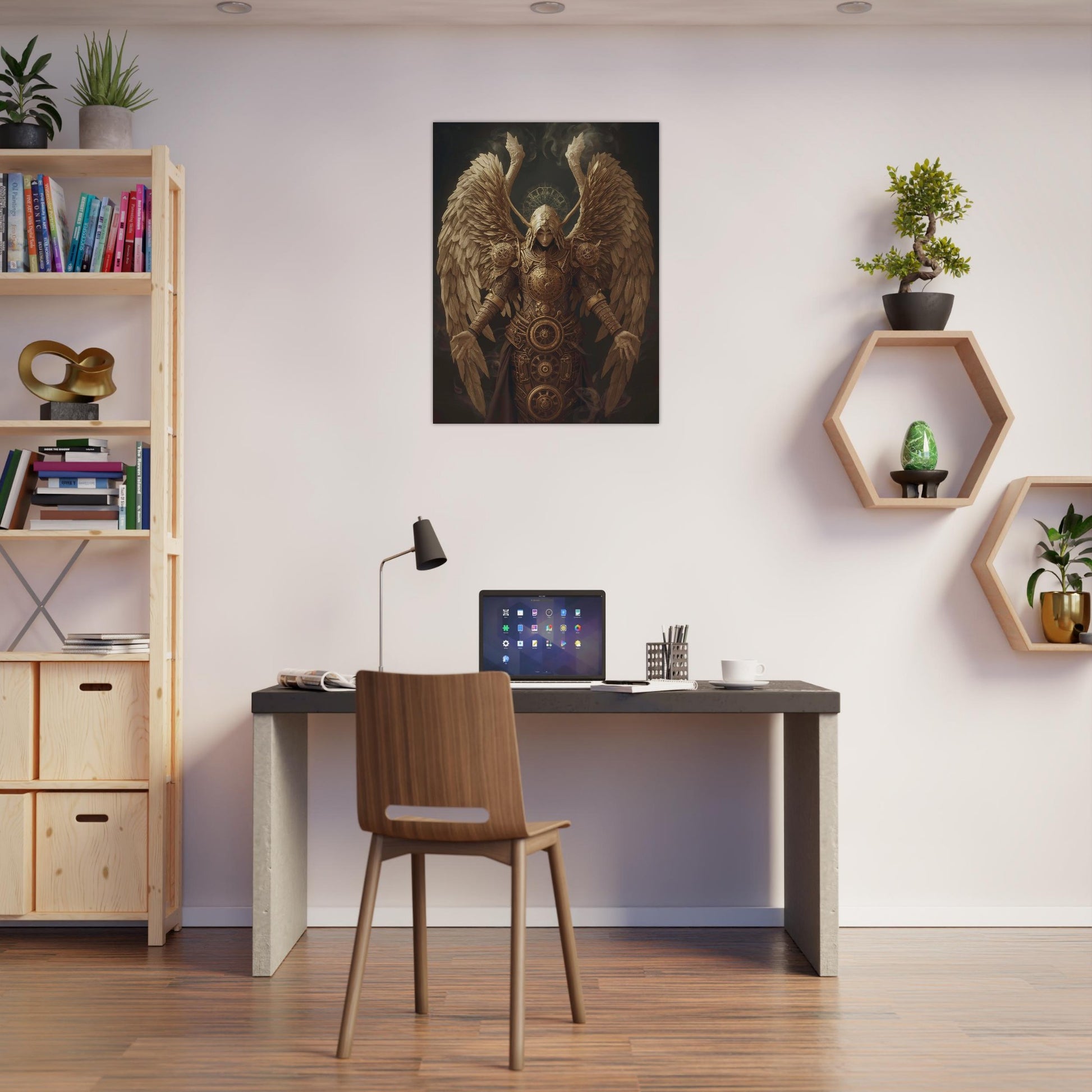 Step into a world where elegance and machinery intertwine with this Victorian steampunk fallen angel art print. Featuring a solemn angel figure with mechanical feathered wings, brass and copper clockwork details, and a dark atmospheric background, this artwork blends mythology with industrial-era craftsmanship.
