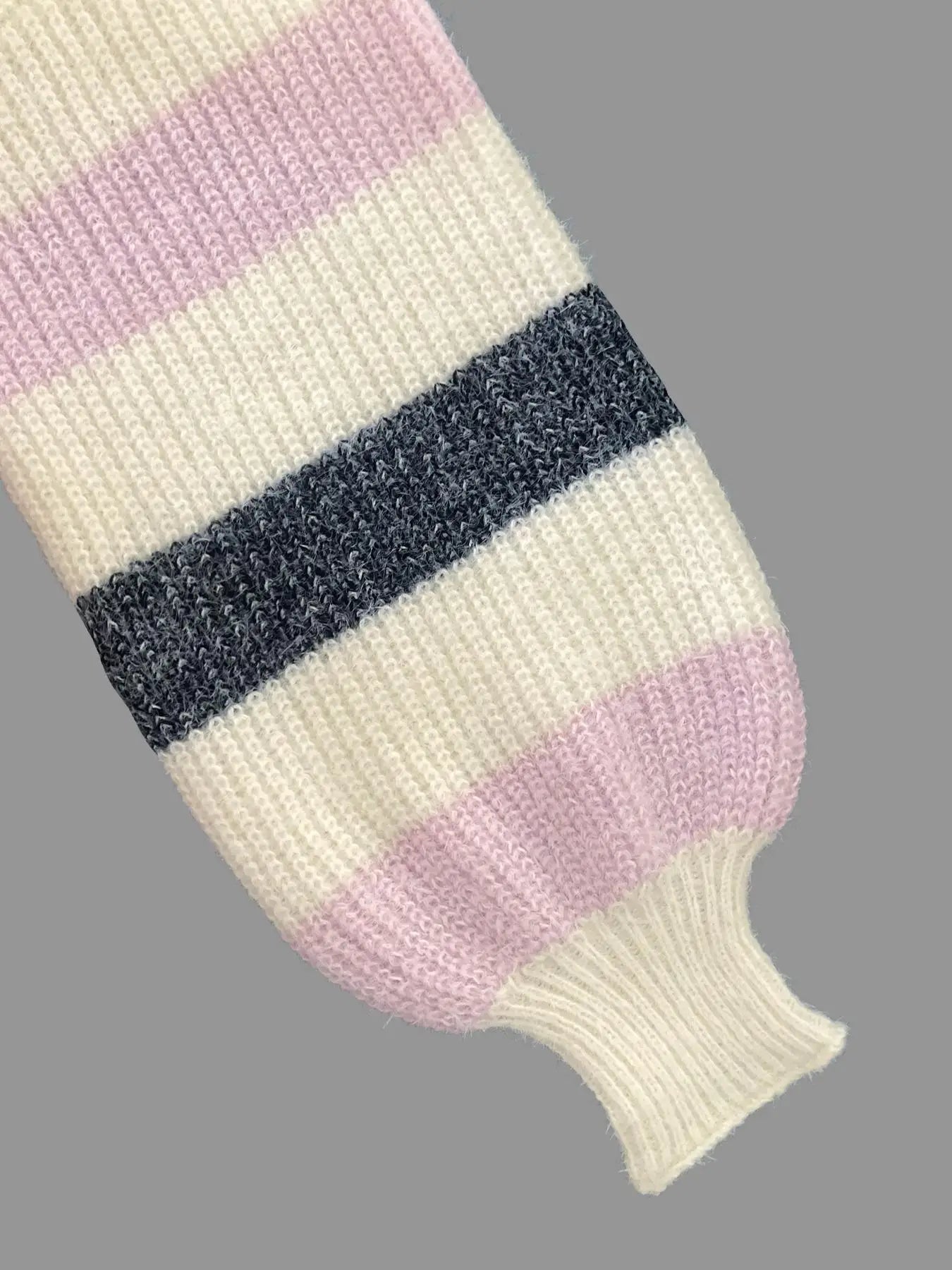 Women’s Plush Striped Button Cardigan – Relaxed Fit Lantern Sleeve Knit