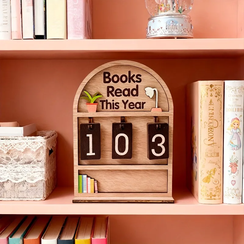 Wooden Reading Tracker Display – Yearly Book Count Ornament for Bookshelf & Office Décor